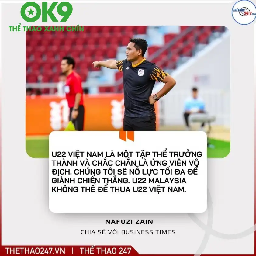Đối thủ tiếp theo của U22 Malaysia sẽ là U22 Việt Nam, một đối thủ không chỉ mạnh mà còn đang là đương kim vô địch SEA Games. HLV Nafuzi Zain đã dành những lời có cánh cho “Những chiến binh Sao Vàng”: “Tôi đã xem U22 Việt Nam thi đấu với U22 Lào. Họ rất mạnh, nhanh và giàu kỹ thuật. Đó là một tập thể trưởng thành và chắc chắn là ứng viên vô địch.” Lời nhận xét này cho thấy sự tôn trọng của ông thầy người Malaysia đối với đối thủ, đồng thời cũng ngụ ý về một trận đấu không hề dễ dàng.